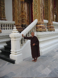 So erreiche ich abends den Khao Yai Nationalpark. Bald sehe ich schon erste Schlangen. Aber leider nicht die erhofften Pythons, sondern Autoschlangen. Direkt aus Bangkok importiert! Offensichtlich hatte nicht nur ich die tolle Idee Weihnachten im Nationalpark zu verbringen. Na, toll. Zurück? Zu spät, zu weit. Also suche ich erst einmal eine Unterkunft. Das ist natürlich ein vergebliches Unterfangen. Als letzte und einzige Möglichkeit bleibt der Campingplatz, wo ich dann zum Preis eines schönen Zimmers mit Aircon in Bangkok ein Zelt, Schlafsack etc. leihen kann. Der Aufbau ist bei dem steinharten Boden und fehlenden Spannschnüren nicht einfach, aber letztendlich steht das Zelt und ich freue mich auf die Geräusche der Nacht. Der Urwald lebt! Und wie! Besonders die thailändischen Familien auf dem Campingplatz. Es herrscht ein Krach wie auf dem Rummelplatz. Zwar gibt es Schilder, daß Gitarren verboten sind (also zumindest schon mal besser als in Australien), aber offensichtlich gilt dies nicht für Trommeln! Irgendwann gegen 1:00 Uhr wird es dann wahrscheinlich zu kalt zum trommeln, denn ich merke, daß es nicht mehr Trommeln sind, die dieses Geräusch erzeugen, sondern mein zitternder Körper. Es ist saukalt! Und das mitten in den Tropen! So zittere ich mich denn durch die Nacht und schlafe erst ein, als die Sonne aufgeht und es gleich auch etwas wärmer wird. Aber der Schlaf währt nicht lange, denn dann wird über kräftige Außenlautsprecher Musik gespielt und ein endloses Geplapper beginnt. Ob es einfach nur ein Guten Morgen, ein Lobgesang auf den König oder sonst was ist, erschließt sich mir nicht. Ist mir auch egal, an Schlaf ist nicht mehr zu denken! Also Zelt abgeben und in die Natur. Aber es wird nicht besser. Zu viele Menschen lassen einfach kein Naturgefühl aufkommen. Zwar ist mir klar, daß 100m im Wald kein Thailänder mehr sein wird, aber ich denke an die nächste Nacht und fahre lieber auf eine Weihnachtsparty. Und eine Party ist das wirklich! Zwar nicht anläßlich von Weihnachten, wie mir eigentlich versichert wurde, sondern aufgrund der Tatsache, daß ein Zwanzigjähriger für ein Jahr Mönch wird. Es gibt freies Essen, Musik, daß einem die Ohren dröhnen und auch hübsche Tänzerinnen. Und das wenn man Mönch wird? Der Abend endet mit Karaoke. Was auch immer daran gefallen soll wird mir auf ewig ein Rätsel bleiben! Na, auch so kann man Weihnachten verbringen - so ganz ohne Kanaster! |